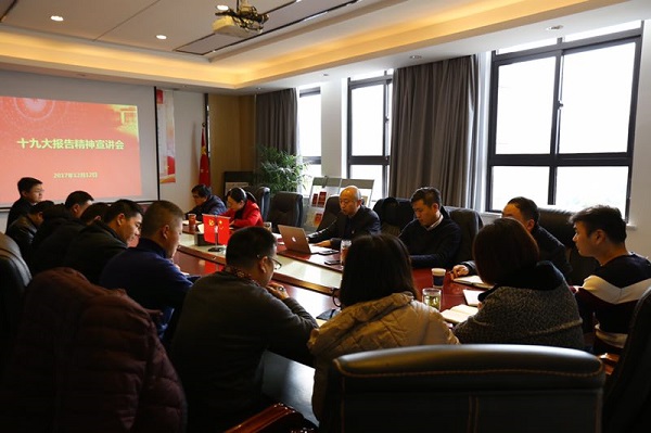 12月12日,徽盐地产公司党委委员、副总经理黎元忠一行到六安项目作党的十九大精神进行宣讲。六安项目中层以上干部及支部全体党员加入了报告会。