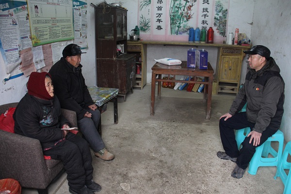 郝锦汉老人今年80岁,妻子患上了帕金森症,大儿子和小儿子均有一定水平的精神疾病,家中只有唯一健康的二儿子的人为是生活的唯一来源,是村里的重点困难户。定远项目党支部为郝锦汉老人一家送去了慰问金和米面粮油等生活必须品,同时也送去全体党员的体贴和祝福。慰问中,支部书记黎元忠与老人进行了亲切交谈,详细询问了老人的食宿和身体状况,并嘱咐老人要多多珍重身体。慰问后支部书记黎元忠立即将老人情况向池河镇党委报告,池河镇党委高度重视,体现会密切跟踪此事,并邀请定远项目支部年后与池河镇党委配合到老人家中进行专题调研,重点资助老人家脱贫。